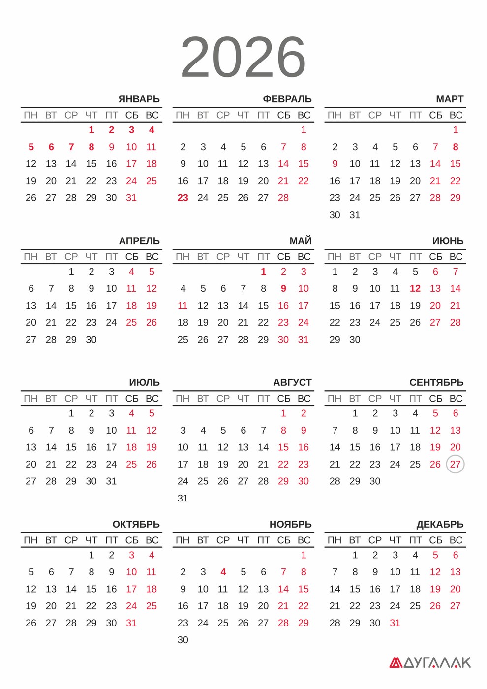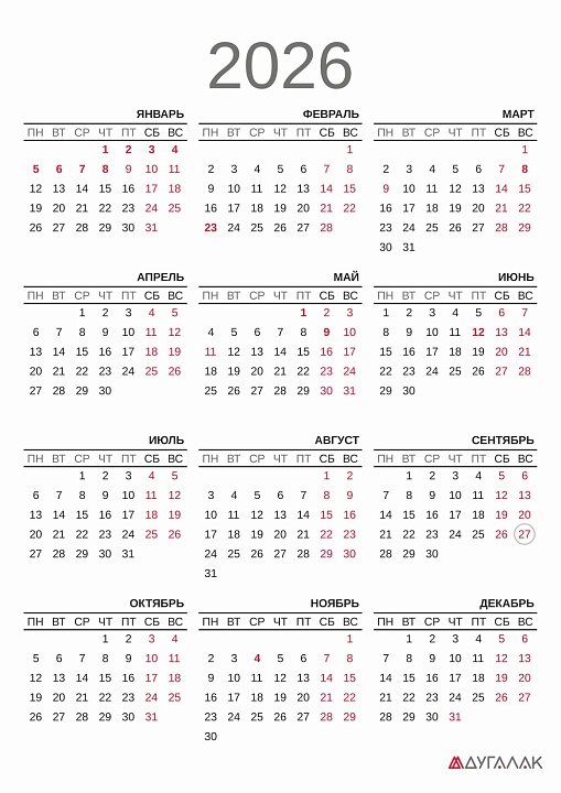 Календарь на 2026 год